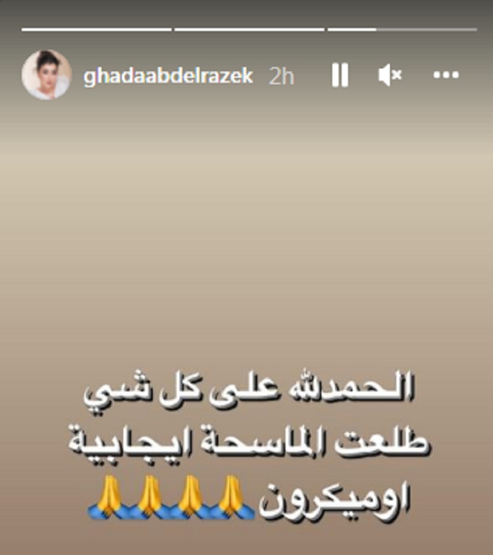 عبر حسابها الشخصي علي إنستجرام نشرت الفنانة غادة عبدالرازق خبراً يفيد بإصابتها بمتحور كورونا الجديد أوميكرون حيث كتبت " الحمد لله علي كل شئ طلعت المسحة إيجابية أوميكرون"