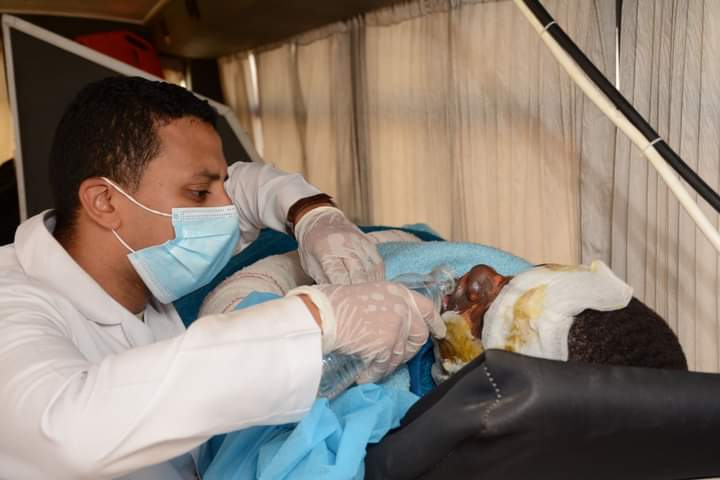 تنفيذاً لتوجيهات السيد الرئيس / عبد الفتاح السيسي رئيس الجمهورية القائد الأعلى للقوات المسلحة ، وفى إطار تضامن مصر مع شعب ليبيا الشقيق أثر إنفجار شاحنة وقود بمدينة ( بنت بيه ) ووقوع عدد من المصابيين .