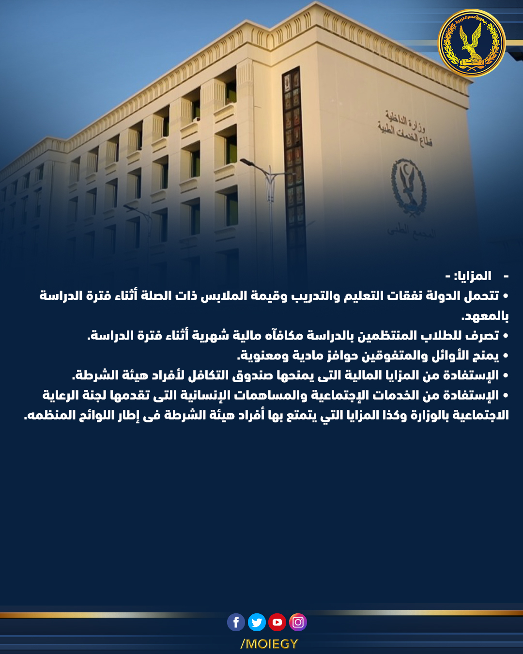 عاجل .. الداخلية تعلن فتح باب التقدم للإلتحاق بالمعاهد الفنية الصحية الشرطية