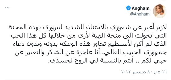 كتبت أنغام عبر حسابها الرسمي علي مواقع التواصل: