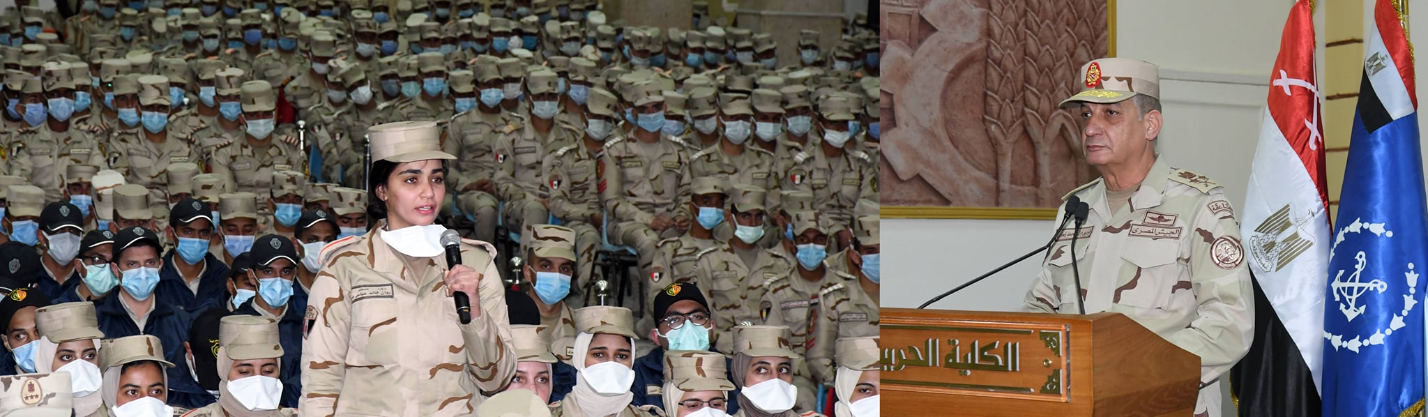 إلتقى الفريق أول / محمد زكى القائد العام للقوات المسلحة وزير الدفاع والإنتاج الحربى بطلبة الكلية الحربية والكلية الجوية والكلية الفنية العسكرية وكلية الطب بالقوات المسلحة والمعهد الفنى للقوات المسلحة بحضور الفريق / أسامة عسكر رئيس أركان حرب القوات المسلحة ، وعدد من قادة القوات المسلحة ، وعدد من الشباب المشاركين فى برنامج التأهيل للعمل بوزارة الخارجية والرقابة الإدارية ووزارة النقل ، وذلك إستمراراً لجهود القيادة العامة للقوات المسلحة للإطمئنان على سير العملية التعليمية داخل الكليات والمعاهد العسكرية .